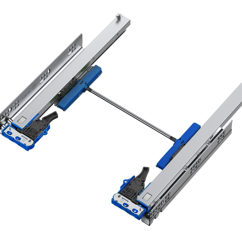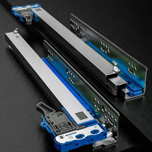 Trilhos Telescópicos – Com ou sem amortecimento, e versões push-open para gavetas sem puxadores, proporcionando suavidade e praticidade no uso.